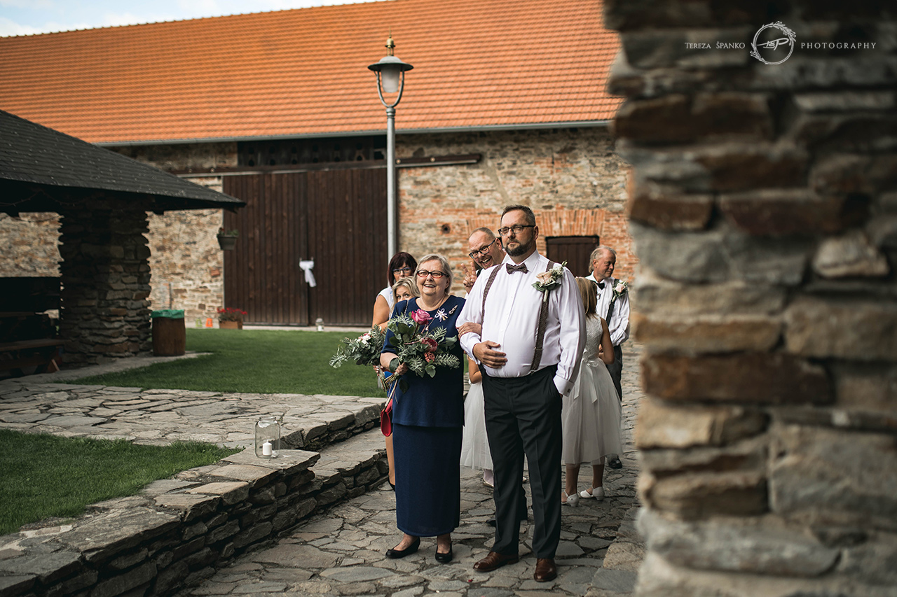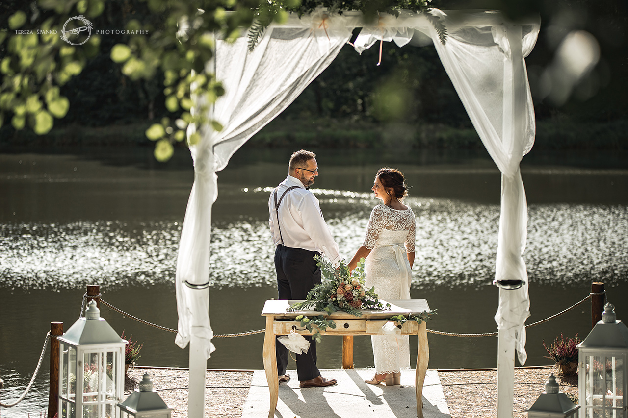 Starobylý mlýn Davídkov je překrásné romantické svatební místo mezi Kutnou Horou a Prahou. Dýchne tam na vás neuvěřitelný klid a pohoda, pastviny a lesy kam se podíváš, rybník s molem přímo táhne budoucí novomanžele ke svatebnímu obřadu 🙂 Svatba Zuzky s Ondrou byla malá, milá a rodinná – plná dětí vlastních i budoucích, manželových i nevěstiných, byla plná balónků a šmoulích helio-hlášek, byla plná jídla a zákusků – naprosto famózních… jo a byla dokonce tak plná jídla, že se svatební dort vůbec nenakrojil – nikdo prostě nemohl 😀 Takže jsme se na něj šli jen podívat do ledničky 🙂 Folková kapela hrála a zpívala jak o život…. a když si báječnou ženskou vezme báječnej chlap, tak mají báječnej život !!! Věřím, že takhle to bude právě u Zuzky s Ondrou … čáp již brzy přiletí 🙂