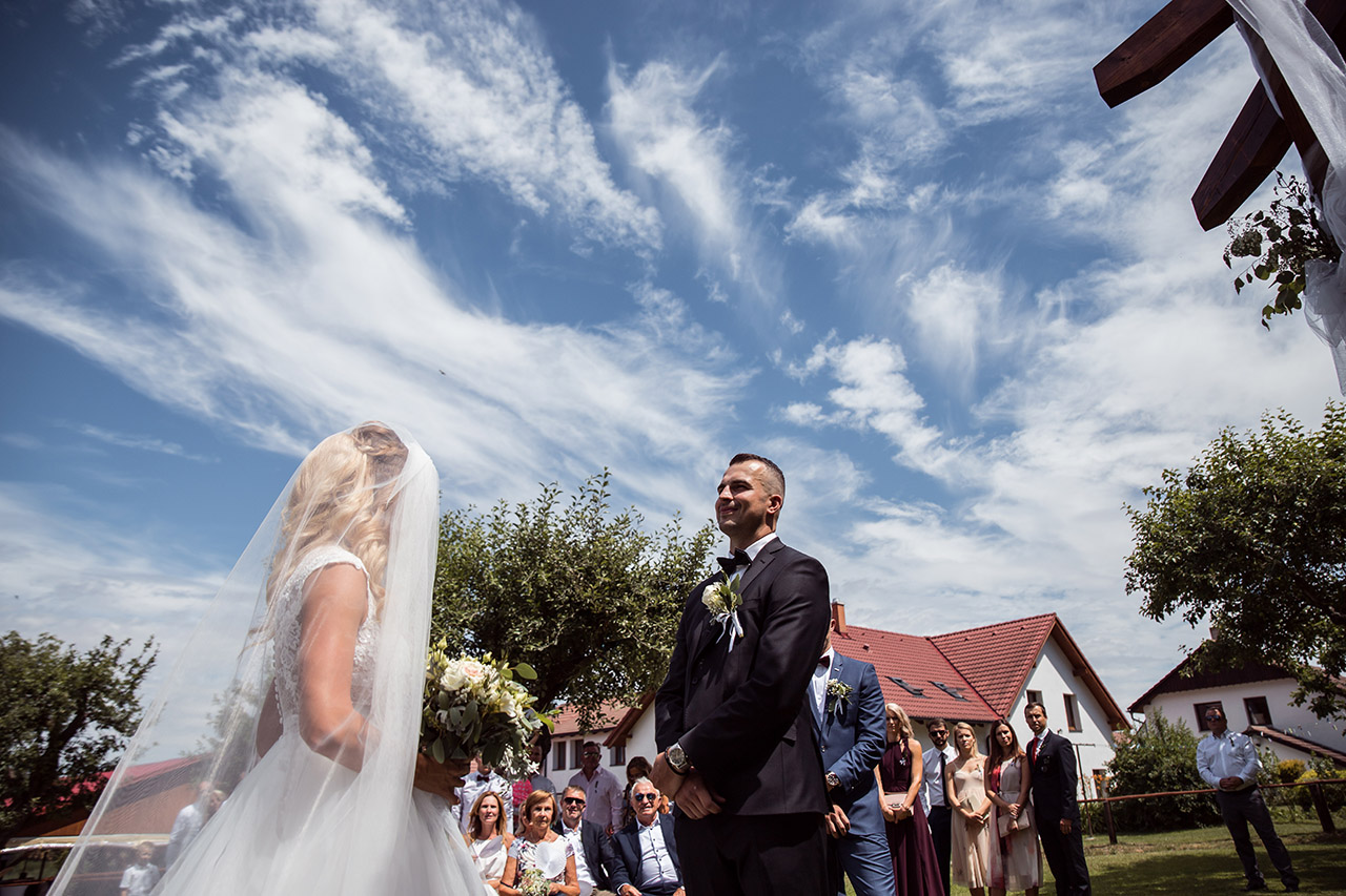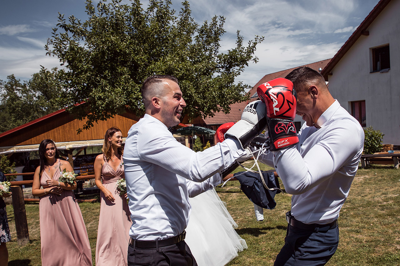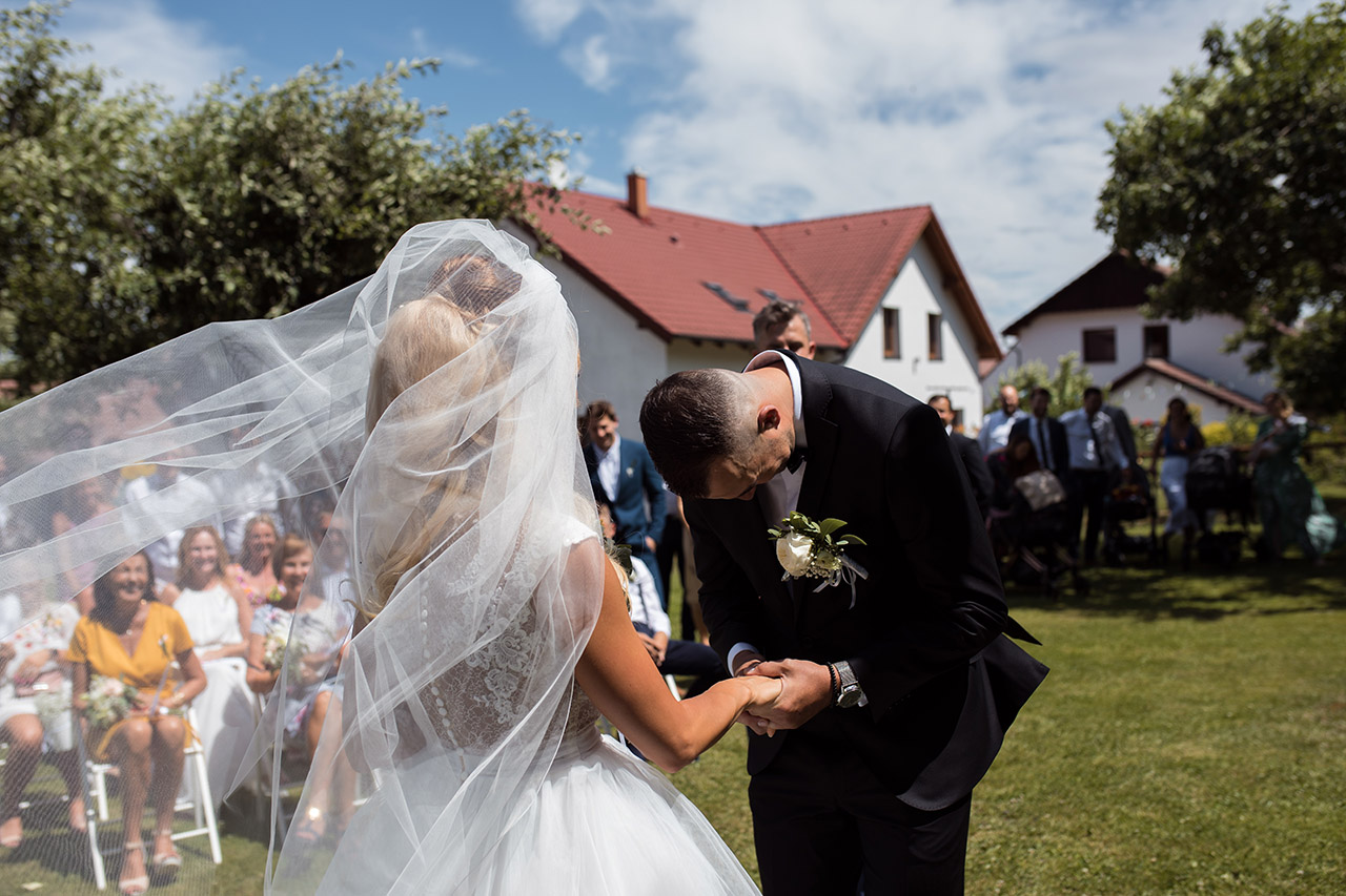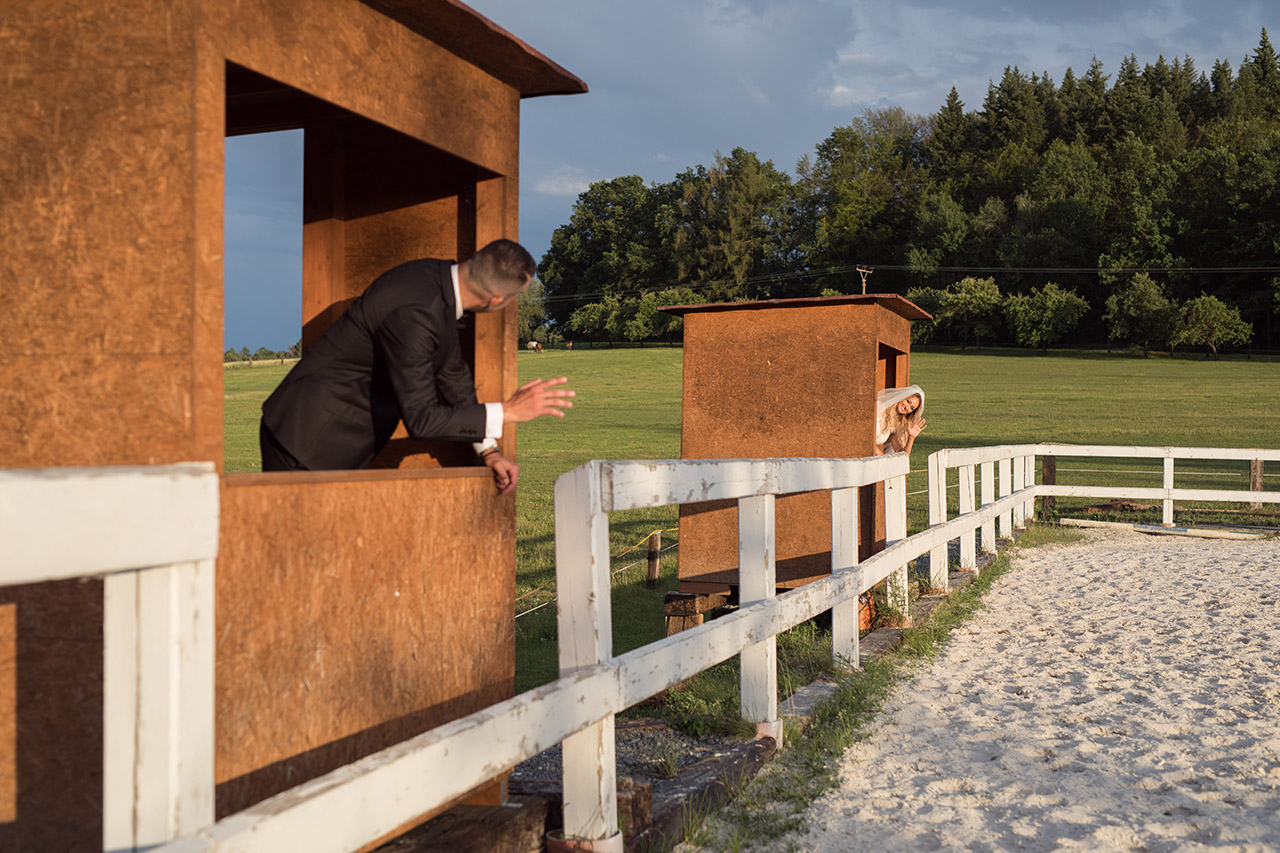 Farmu Heroutice kousek za Prahou si pro svůj svatební den vybrali Adélka s Matějem a troufnu si říci, že na jejich veselici nikdo jen tak nezapomene. Jejich nádherný venkovní obřad vyzdobily na obloze i samotné mraky, jejich dojemné a láskyplné svatební sliby nám daly všem opravdu „zabrat“, jejich famózní a bezpochyby ten nejoriginálnější svatební tanec, co jsem kdy viděla, naprosto ohromil všechny hosty, jejich svatba byla jednoduše nádhernou ukázkou toho, jak všechno v životě může úžasně fungovat, když máte kolem sebe skvělé přátele a rodinu, když je vše tvořeno s láskou a pokorou, když mají lidé srdce na pravém místě a když se k tomu všemu přidá nějaké to požehnání ze shora 🙂 Přeji Vám hodně štěstí, upřímné lásky a nikdy nezapomeňte na ty krásné sliby, co jste si dali. Ještě teď mi zní v uších – byla to nádhera!