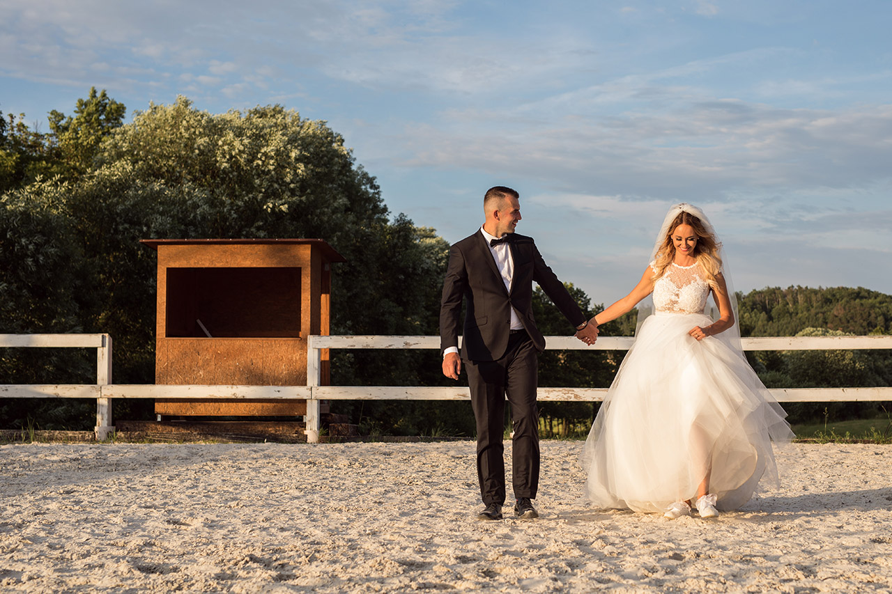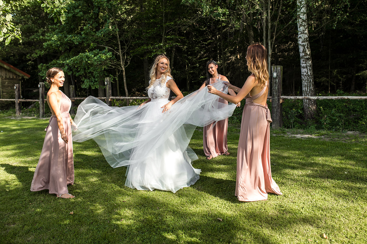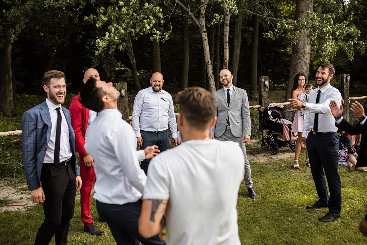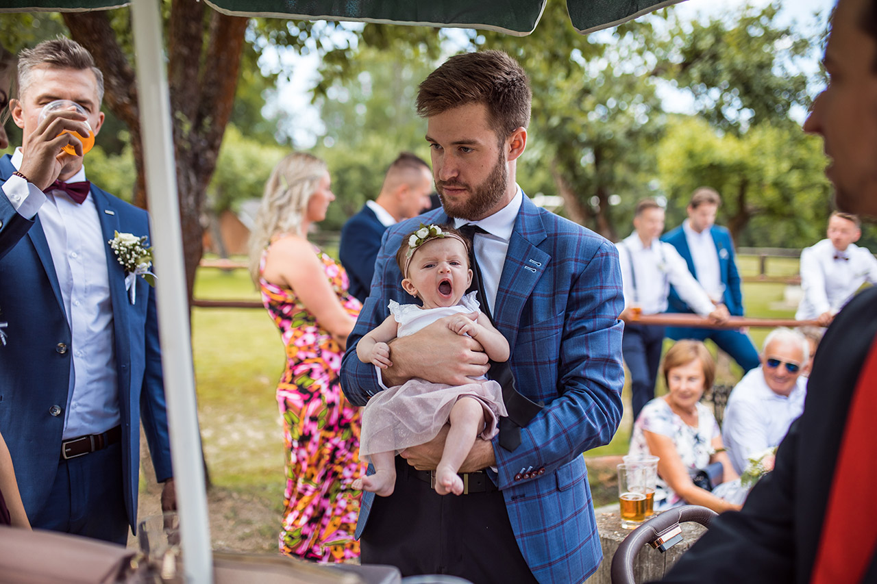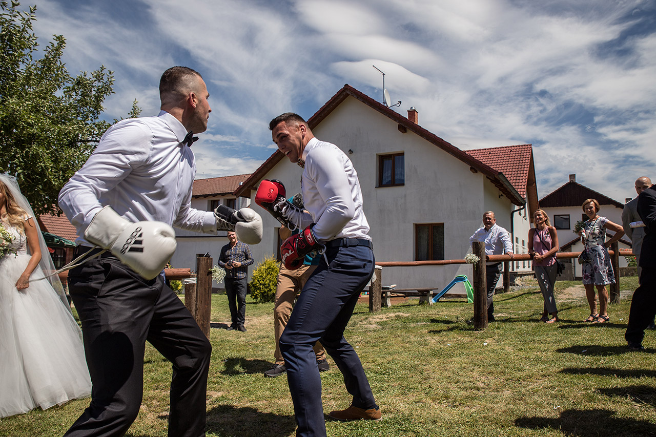 Farmu Heroutice kousek za Prahou si pro svůj svatební den vybrali Adélka s Matějem a troufnu si říci, že na jejich veselici nikdo jen tak nezapomene. Jejich nádherný venkovní obřad vyzdobily na obloze i samotné mraky, jejich dojemné a láskyplné svatební sliby nám daly všem opravdu „zabrat“, jejich famózní a bezpochyby ten nejoriginálnější svatební tanec, co jsem kdy viděla, naprosto ohromil všechny hosty, jejich svatba byla jednoduše nádhernou ukázkou toho, jak všechno v životě může úžasně fungovat, když máte kolem sebe skvělé přátele a rodinu, když je vše tvořeno s láskou a pokorou, když mají lidé srdce na pravém místě a když se k tomu všemu přidá nějaké to požehnání ze shora 🙂 Přeji Vám hodně štěstí, upřímné lásky a nikdy nezapomeňte na ty krásné sliby, co jste si dali. Ještě teď mi zní v uších – byla to nádhera!